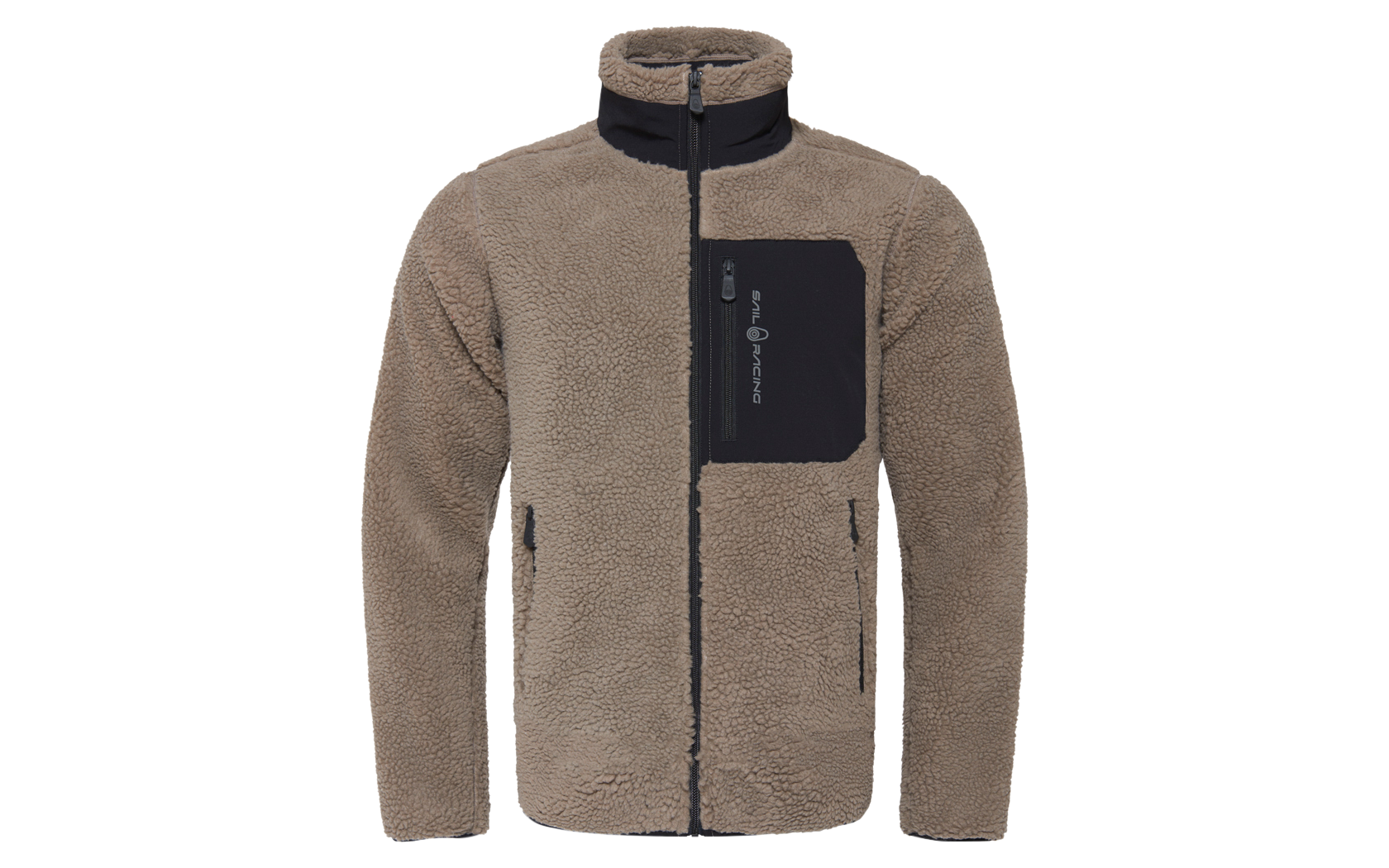 Bowman Pile Zip Jacket, a warm transitional zip jacket, crafted in a soft and plush pile fleece fabric made of polyester with a soft jersey lining. The woven chest pocket with a zipper provides convenient storage, while the high collar with woven details protects against wind intrusion and adds a touch of sophistication. The zip jacket also features two waist pockets with zippers for additional storage and is designed with an embroidered Sail Racing logo on the chest pocket.