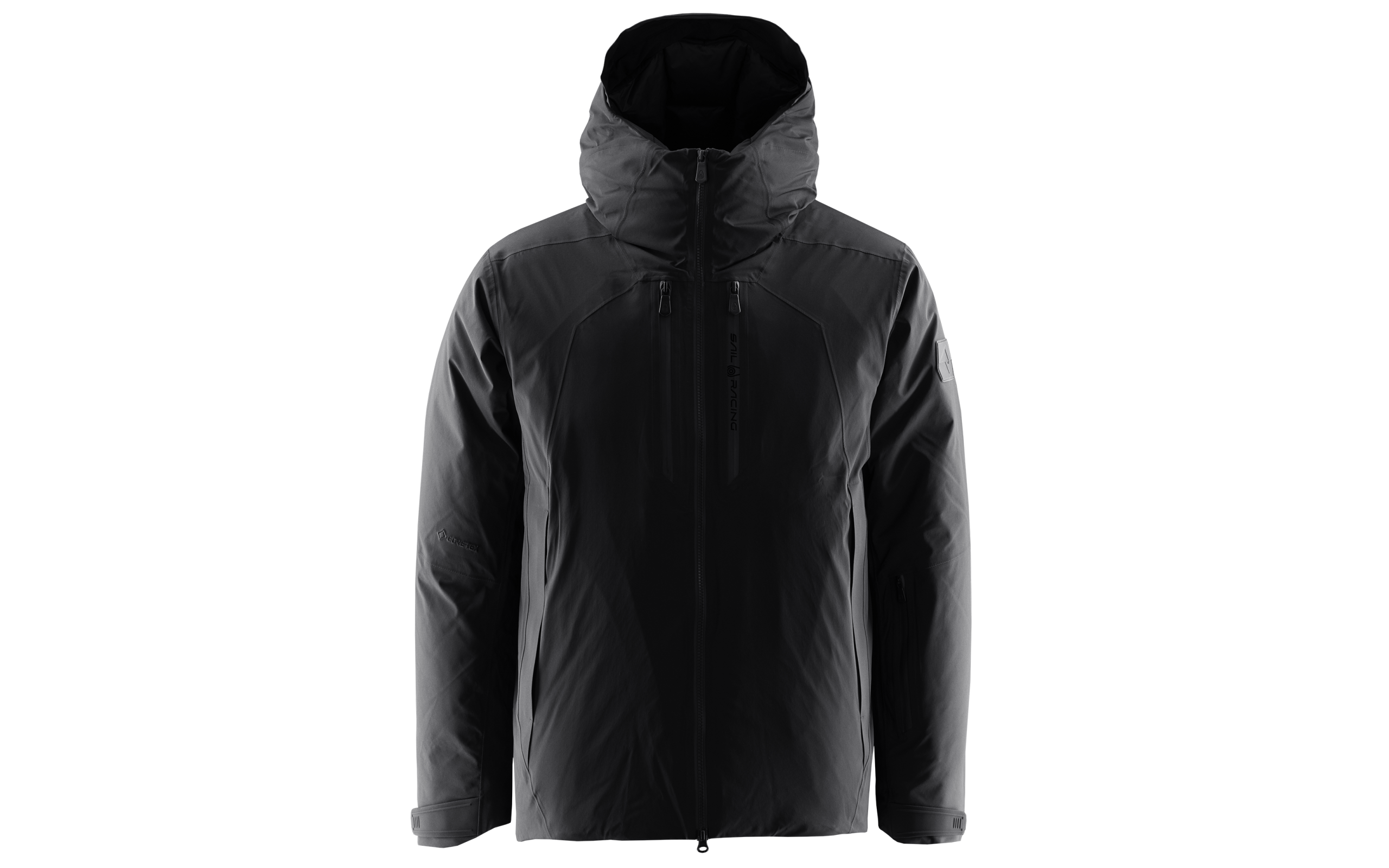 Finished with a Sail Racing logo on the zipper pull of the left chest pocket, an embroidered GORE-TEX® logo on the lower right sleeve, a Sail Antarctica™ logo on the left arm, and a tonal, welded bloc logo on the top of the hood.